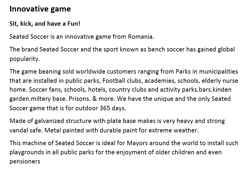 We are proud to make outdoor quality materials & paint. & after sale service 24/7 worldwide +40769598946 Sitting football